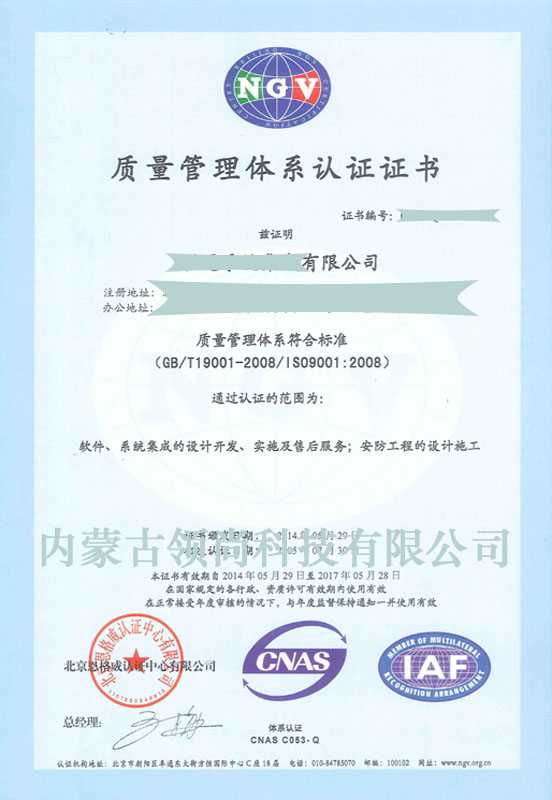 ISO9001質(zhì)量管理體系認(rèn)證證書